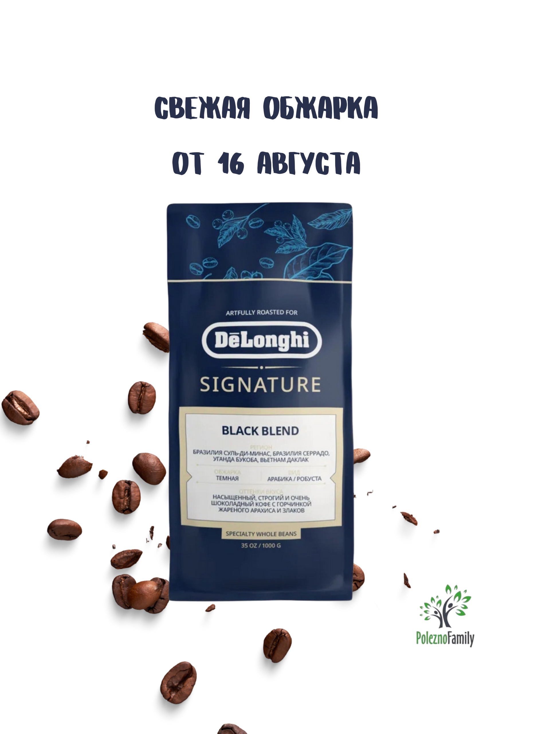 Кофе Delonghi Black Blend в зернах 1 кг